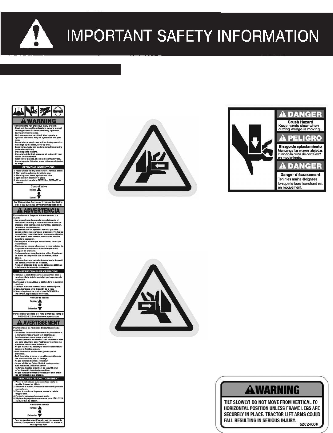 Make sure that all safety warning decals are in good condition and readable. Always replace missing or defaced decals.