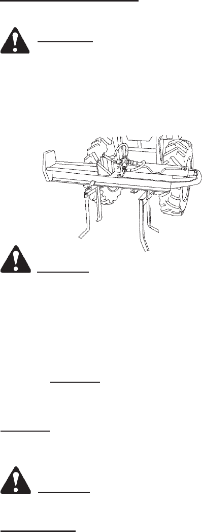 FRAME LEGS ARE SECURELY IN PLACE. TRACTOR LIFT ARMS COULD FALL