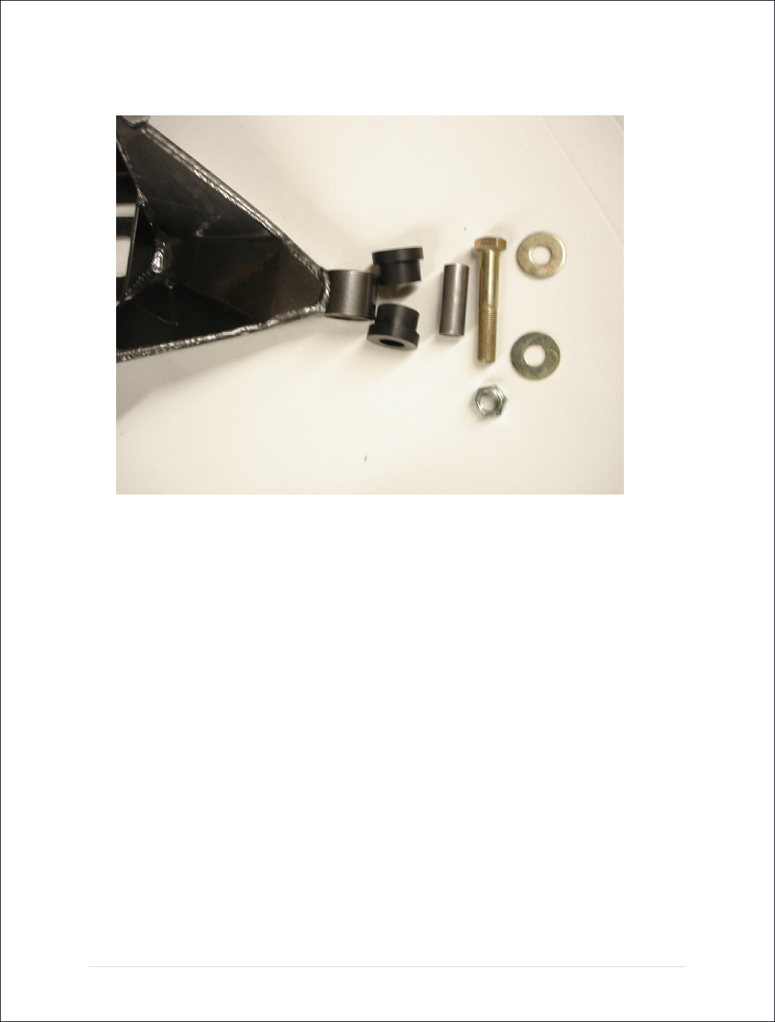 Assemble the rear pivot busing and 9/16 x 2” sleeve into the Torque Arm rear