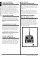 EN DE 3. Move the throttle stick and switches on the transmitter to the desired AR600 smartsafe positions, usually low throttle. HOW TO RANGE TEST THE DX5E Before each flying session, and especially with a new model, it is important to perform a range check. The DX5e incorporates a range testing mode which reduces the output power of the transmitter, allowing a range check. RANGE TESTING THE DX5E FR 1. With the model restrained on the ground, stand 30 paces (approx.