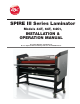 SPIRE III Series – Installation and Operating Instructions Before you operate this machine, it is important that you read and understand the entire contents of these instructions and be fully trained. CAUTION: The receptacle must be located near the equipment and must be easily accessible. Disconnect the attachment plug from the receptacle to which it is connected and keep the power supply cord in your possession while moving the laminator.