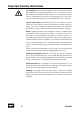 Important Security Information Air circulation: Chassis openings offer ventilation and serve to protect the machine from overheating. NEVER cover or otherwise close off these openings. NEVER place the machine on a soft surface (carpet, sofa, etc.). Make sure to provide for a mounting space of 4-5 cm/2 inches to the sides of the unit when mounting the unit in racks or cabinets. Controls And switches: Operate the controls and switches only as described in the manual.