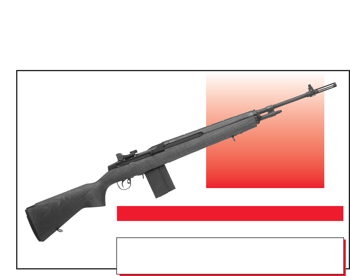 FIRING THE RIFLE WARNING: BEFORE AIMING AND FIRING YOUR RIFLE BE SURE IT IS SAFE TO DO SO. KNOW WHERE YOUR BULLET WILL BE STOPPED. When the rifle is loaded and you intend to fire, aim at your target, move the safety to the off position and pull the trigger. Expect the gun to fire loudly and recoil. Do not drop the rifle. The M1A will automatically chamber a live round from the magazine after each shot until the magazine is empty. When through firing put the safety “ON” and unload the gun.