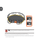 8 WARNING - Do not use the trampoline until it is completely assembled. Failure to follow these instructions may cause rods to break or eject from the trampoline frame. NOTE - Check that the net is not caught on the trampoline frame or the bolts – if the net catches, it may tear. Moving clockwise around the frame, carefully slide the net up to the top of the white mat rods. Carefully pull the net up over the edge of the mat. It is normal for the net to be tight.