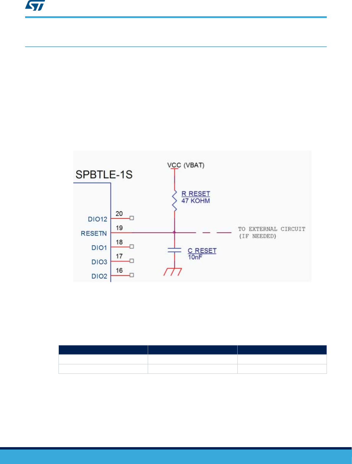 The SPBTLE-1S module requires an external pull-up reset circuitry to ensure proper operation at power on. Refer