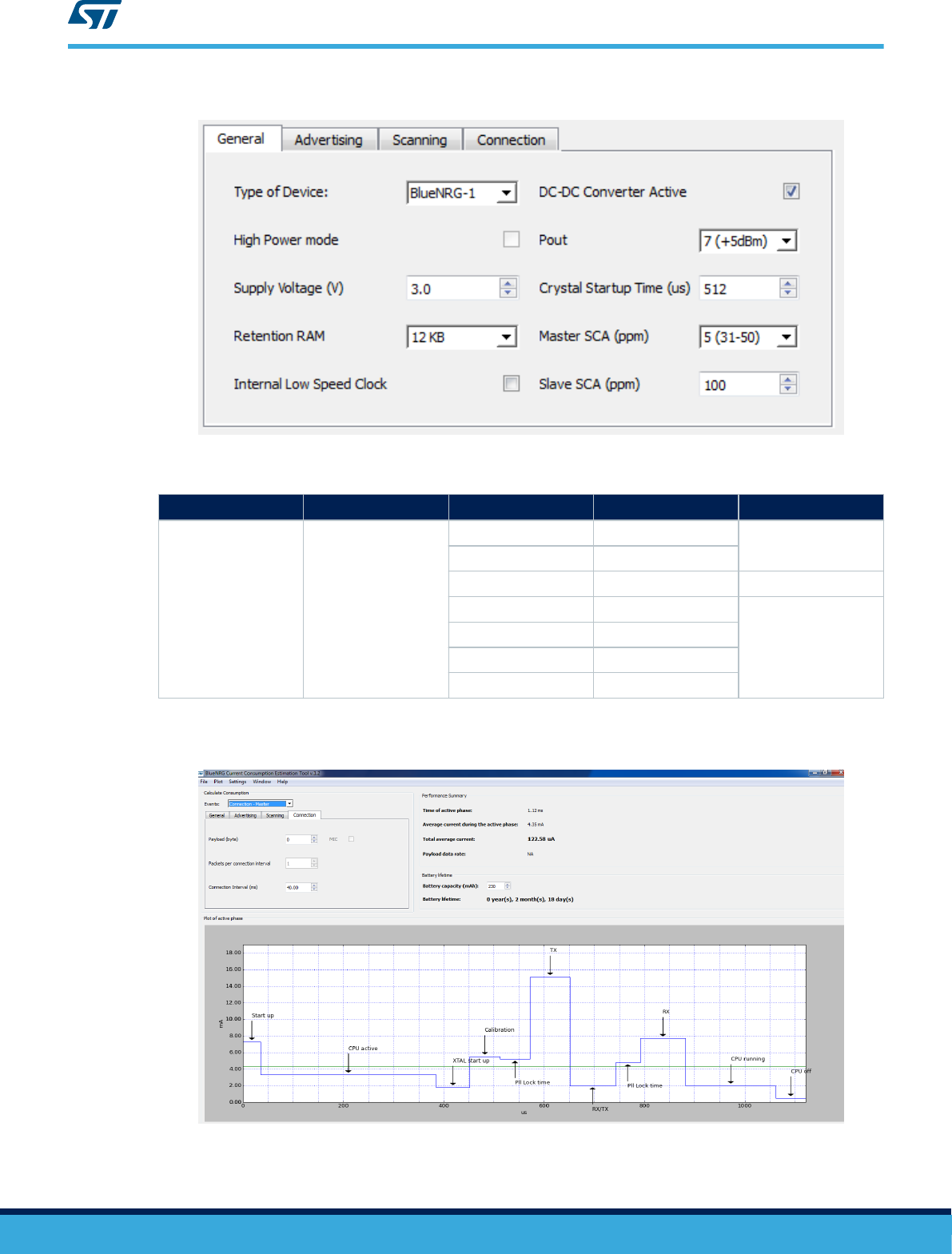 Figure 4. Configuration of the “BlueNRG current consumption estimation tool”