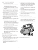 Burner Troubleshooting SYMPTOM CAUSE REMEDY Loud, high-pitched whine Flame is too rich. Verify pressure tap between gas valve and blower inlet. Turn to Page 19 and verify that the gas regulator setting is 0.2” (0.5cm) wc below the blower inlet pressure. Replace gas orifice with smaller size. Flame is “fluttery.” Exhaust may have acrid smell or burner may fail to stay lit. Flame is too lean. Turn to Page 19 and verify that the gas regulator setting is 0.2” (0.5cm) wc below the blower inlet pressure.