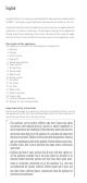 health and the environment. The crossed out “wheeled bin” symbol on the product reminds you of your obligation, that when you dispose of the appliance it must be separately collected. Consumers should contact their local authority or retailer for information concerning the correct disposal of their old appliance. Specifications Rated voltage Power output Dimensions Weight Tank capacity Max. dehumidification per day Sound level Complies with EU regulations 220 - 240 V 420 W (35°C 90% RH) max.