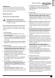 (Traduction des instructions initiales) Malgré l'application des normes de sécurité correspondantes et la présence de dispositifs de sécurité, les risques résiduels suivants ne peuvent être évités. Ceci comprend : u Les blessures dues au contact avec une pièce mobile/en rotation. u Les blessures causées en changeant des pièces, lames ou accessoires. u Les blessures dues à l'utilisation prolongée d'un outil. Une utilisation prolongée de l'outil nécessite des pauses régulières. u Déficience auditive.