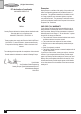 ENGLISH (Original instructions) EC declaration of conformity % MACHINERY DIRECTIVE FME340 Stanley Europe declares that these products described under "technical data" are in compliance with: 2006/42/EC, EN 60745-1, EN 60745-2-11 These products also comply with Directive 2004/108/EC and 2011/65/EU. For more information, please contact Stanley Europe at the following address or refer to the back of the manual.