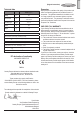 ITALIANO (Traduzione del testo originale) Dichiarazione di conformità CE DIRETTIVA SUI MACCHINARI % FME600 Stanley Europe dichiara che questi prodotti descritti al paragrafo "Dati tecnici" sono conformi a: 2006/42/CE, EN 60745-1, EN 60745-2-4 Questi prodotti sono conformi alla Direttiva 2004/108/CE e 2011/65/UE.Per ulteriori informazioni contattare Stanley Europe al seguente indirizzo oppure consultare l’ultima di copertina del manuale.