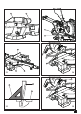 DEUTSCH (Übersetzung der ursprünglichen Anweisungen) Sichern Sie das Sägeblatt im Neigungswinkel von 0° und drehen Sie die Platte vollständig in den rechten Gehrungswinkel. u Wenn Sie den Schlitten ganz zu sich hingezogen haben, befestigen Sie die Schlittenstangen. u Drücken Sie den Griff ganz nach unten und verriegeln Sie ihn in dieser Position durch Eindrücken des Anschlagstiftes. u Zum Tragen des Werkzeugs halten Sie die Platte wie in der Abbildung dargestellt.