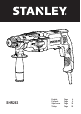 ENGLISH (Original Instructions) Intended use Your STANLEY SHR263 SDS-Plus rotary hammer is intended to drill holes in concrete, bricks, wood, and steel, light chipping and for carbide tipped core drilling or use for screw driver. This tool is intended for professional use. SAFETY INSTRUCTIONS General Power Tool Safety Warnings WARNING! Read all safety warnings and all instructions. Failure to follow the warnings and instructions may result in electric shock, fire and/ or serious injury.