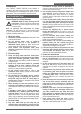 ENGLISH (Original Instructions) g. Use the power tool, accessories and tool bits etc. in accordance with these instructions, taking into account the working conditions and the work to be performed. Use of the power tool for operations different from those intended could result in a hazardous situation. 5. Service a. Have your power tool serviced by a qualified repair person using only identical replacement parts. This will ensure that the safety of the power tool is maintained.