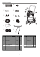 PART LIST DESCRIPTION ITEM QTY ITEM DESCRIPTION QTY 1 Upper handle 1 12 Power cord 1 2 On/off switch 1 13 Transport handle 1 3 Top cover 1 14 Transport handle bracket 2 4 Baffle 1 15 Latch 2 5 Cord clamp 1 16 Dust tank 1 6 Lid 1 17 Vacuum port 1 7 Motor support sealing ring 1 18 Drain port 1 8 Motor 1 19 Wheel dolly 1 9 Sponge 1 20 Drain cap 1 10 O-ring 1 21 Caster 2 11 Motor bottom support 1 22 Wheel 2 11