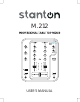 INTRODUCTION Thank you for purchasing Stanton’s newest innovation in professional tabletop mixer. The M.212 mixer was designed to bring style and reliability to the mobile or club DJ at an affordable cost. MAIN FEATURES 2 bend EQ w/ input GAIN control per channel. Fader Start Power on/off muting Long Life crossfader Crossfader curve control ACCESSORIES Checking Package Contents Check that the carton contains the following items: (1) M.