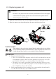 2.4. Power supply 2.4.1. Specified power supply The following specification is requested for Power supply. Battery Charger : DC 8.4 V/0.8 A Avoid using power supply which its power capacity of power current is extremely high. 2.4.2. Installing the battery and the belt clip Cautions : 1) Before installing or removing the battery pack, ensure the printer is OFF. 2) If the printer is not used for long period of time, remove the battery pack from the printer. 1.