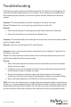 Troubleshooting The following section provides troubleshooting help. The solutions are arranged in the order they should be attempted in most situations. If you continue to have difficulties after attempting the solutions in this section, please contact StarTech.com technical support. Symptom: The remote displays are black or display a “no signal” message. Cause: The Remote Unit is not receiving a signal from the Local Unit. Remedy: 1.