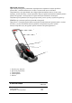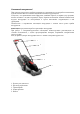 18. При роботі з газонокосаркою носіть спеціальний одяг, головний убір, взуття та засоби індивідуального захисту (захисні окуляри, захисний щиток, рукавички). ЗБІРКА Увага! При збірці пристрою двигун не повинен працювати і мережевий кабель повинен бути від'єднаний. 1. Вийміть деталі з коробки. 2. Вставте нижні частини рукоятки в отвори корпусу, як показано на малюнку і закріпіть гвинтами. 3. Закріпити верхню частину рукоятки за допомогою спеціальних болтів. 4.