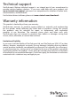 Technical support StarTech.com’s lifetime technical support is an integral part of our commitment to provide industry-leading solutions. If you ever need help with your product, visit www.startech.com/support and access our comprehensive selection of online tools, documentation, and downloads. For the latest drivers/software, please visit www.startech.com/downloads Warranty information This product is backed by a three-year warranty. StarTech.