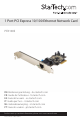 Introduction Thank you for purchasing a StarTech.com PCI Express 10/100 Ethernet Card. Providing a simple way to add 10/100 Ethernet capability to a PCI Express enabled server or workstation for data throughput speeds of up to 2.5Gbps, PEX100S provides a broad range of features and functions, including support for both Full and Half Duplex operation as well as Wake On LAN (WOL) Power Management. PEX100S also features Auto MDI/MDIX automatic configuration, simplifying installation and configuration.