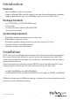 Technical Support StarTech.com’s lifetime technical support is an integral part of our commitment to provide industry-leading solutions. If you ever need help with your product, visit www.startech.com/support and access our comprehensive selection of online tools, documentation, and downloads. For the latest drivers/software, please visit www.startech.com/downloads Warranty Information This product is backed by a three year warranty. In addition, StarTech.