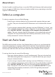 Select a computer • To select a computer, press the Left Ctrl key twice and the number of the PC port that you want to select. For example, if you want to select computer 2, you would press Left Ctrl, Left Ctrl, 2. Caution! Don’t use the numeric keyboard on the right side of your keyboard when you complete the hotkey command above. Start an Auto Scan • To start an Auto Scan, press Left Ctrl, Left Ctrl, F1. The port selection/link LEDs blink during the Auto Scan process.