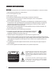IMPORTANT SAFETY INSTRUCTIONS WARNING: To reduce the risk of fire or electric shock, do not expose this apparatus in or near rain or moisture. 1. Read and keep these instructions for future reference. 2. Do not use this apparatus near water. 3. Clean only with a dry cloth. 4. Do not block any ventilation openings. Install according to manufacturer’s instructions. 5. Do not install near any heat sources such as radiators, heat registers, stoves or other apparatus (including amplifiers) that produce heat. 6.
