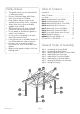 Safety Advice Table of Contents • The gazebo must be positioned and fixed on a flat level surface. • Dispose of all plastic bags safely. Keep them out of the reach of children. • Keep children and pets away from the assembly area until the work is completed. • Always wear shoes, gloves and safety goggles when working. • Take special care not to touch overhead power lines with the aluminium profiles. • Do not attempt to assemble the gazebo in windy or wet conditions.