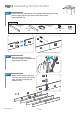 5.D Using at least two people, slide the other two roof gable profiles (5,6 - 5,6A) into tunnels of top gable connector (10) until the small protrusion on their undersides snap into the holes on the underside of top gable connector (10). 6 10 ATTENTION: The tunnels of top gable connector (10) are marked, in order to avoid mistakes when inserting the roof gable profiles. 5 6A 5 5 6 5 6A 10 5 5 6 5 5.