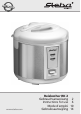 Wassermenge: z.B. bei 4 Messbechern Reis ist Wasser bis Skalenstrich 4 einzufüllen. Niemals mehr als 10 Messbecher Reis nehmen, da der Reis quillt. Betätigen Sie den Schalter, die rote Lampe leuchtet. Nach Beendigung der Kochzeit stellt das Gerät auf Wärmen. Nach Ablauf der Kochzeit den Reis gut durchrühren, damit überschüssiges Wasser verdampfen kann. Den Deckel wieder schließen. Der Reis dämpft nach.