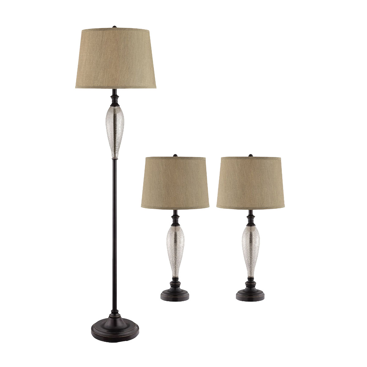 Set of 3 metal & Glass Lamps