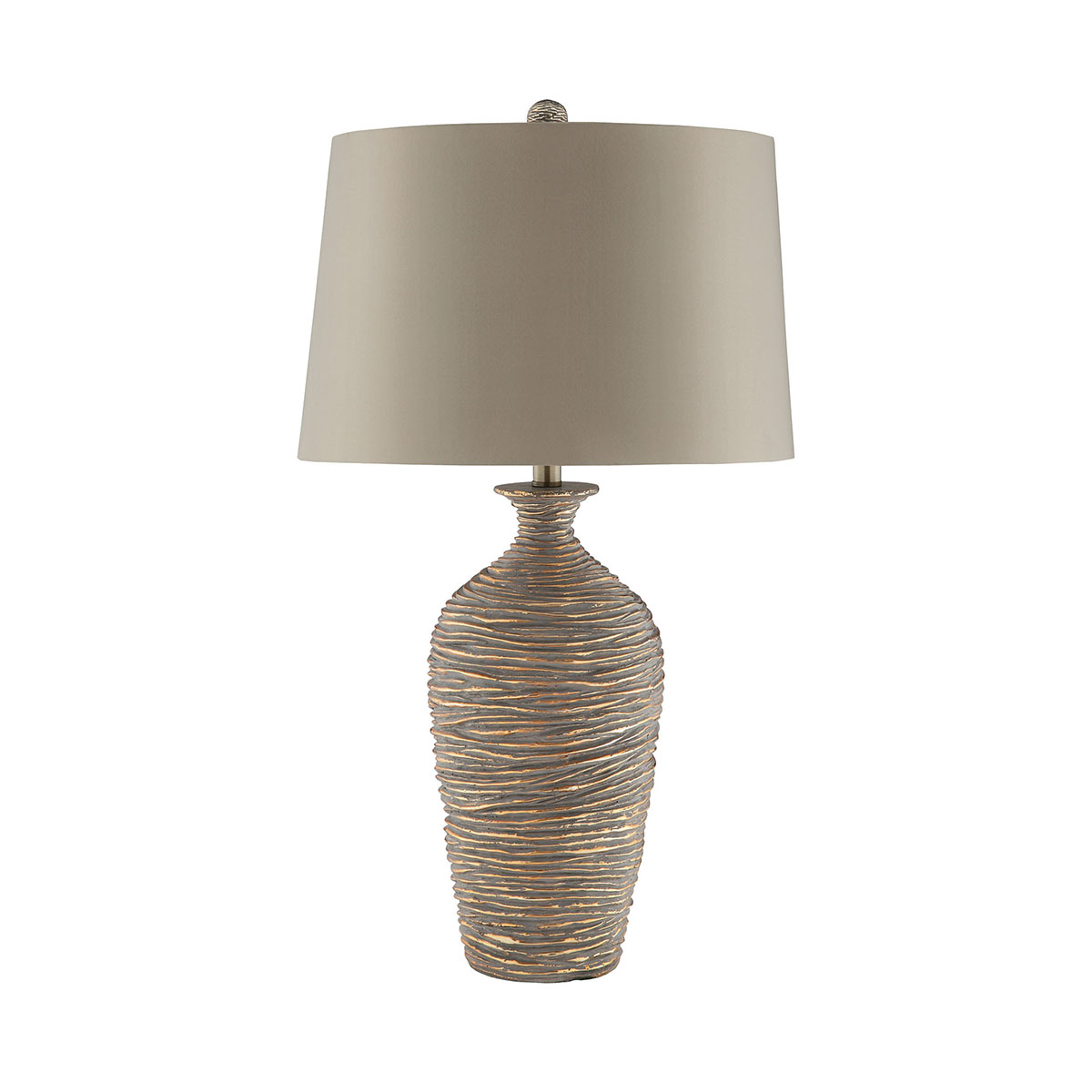 Circular ribbed design ceramic table lamp in rubbed antique