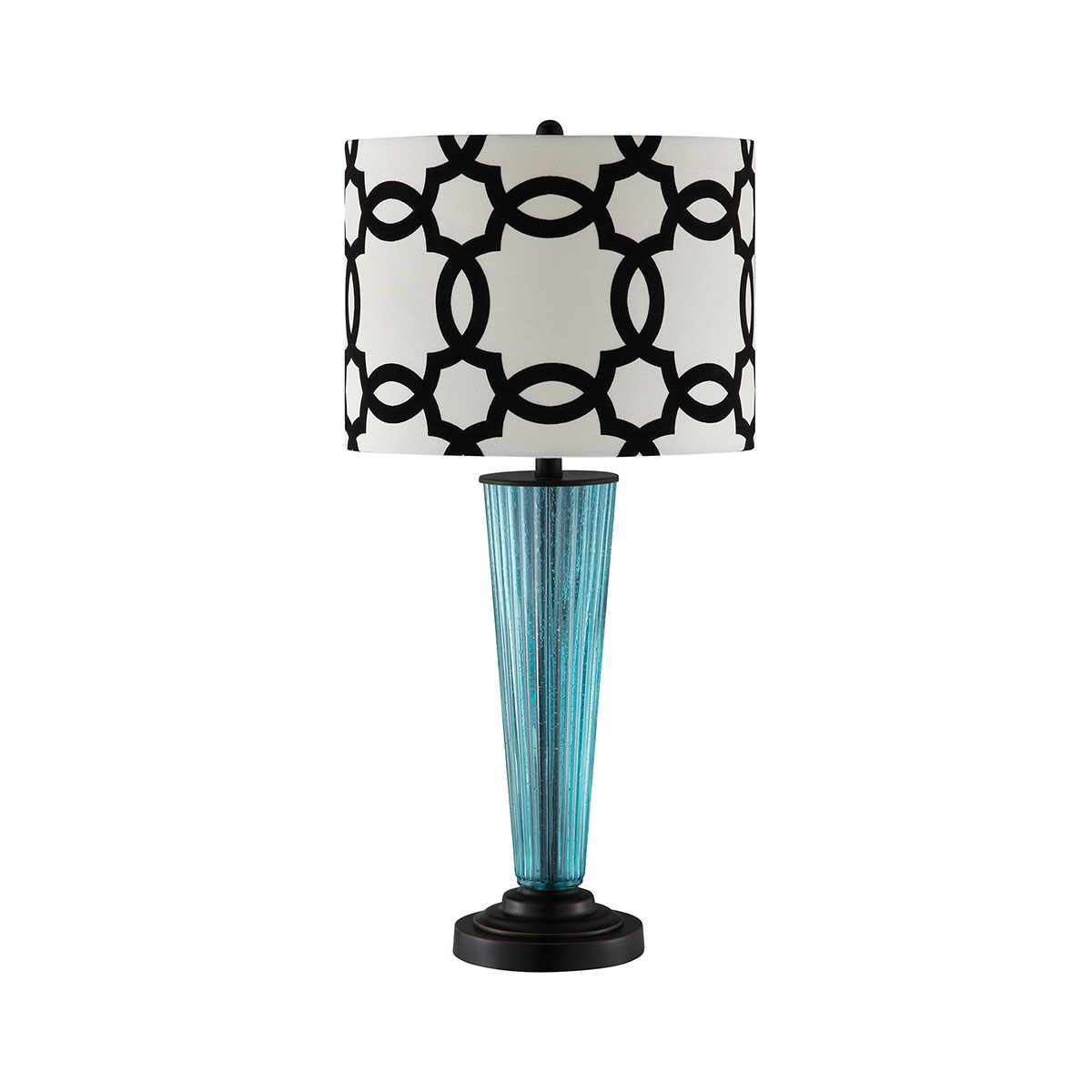 Blue fluted tulip-shaped seeded glass table lamp. Cream