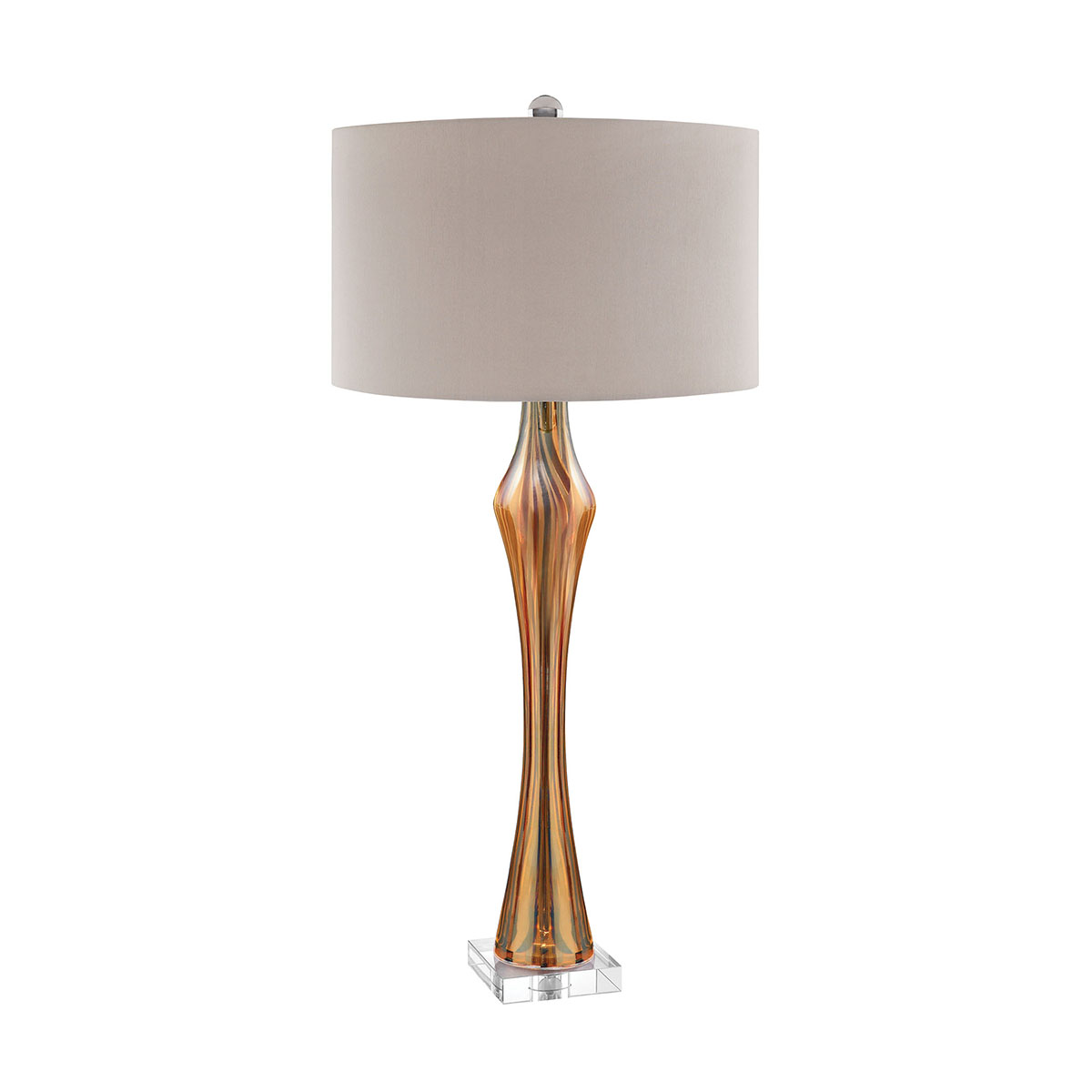 Amber art glass with eggplant and tan vertical design table