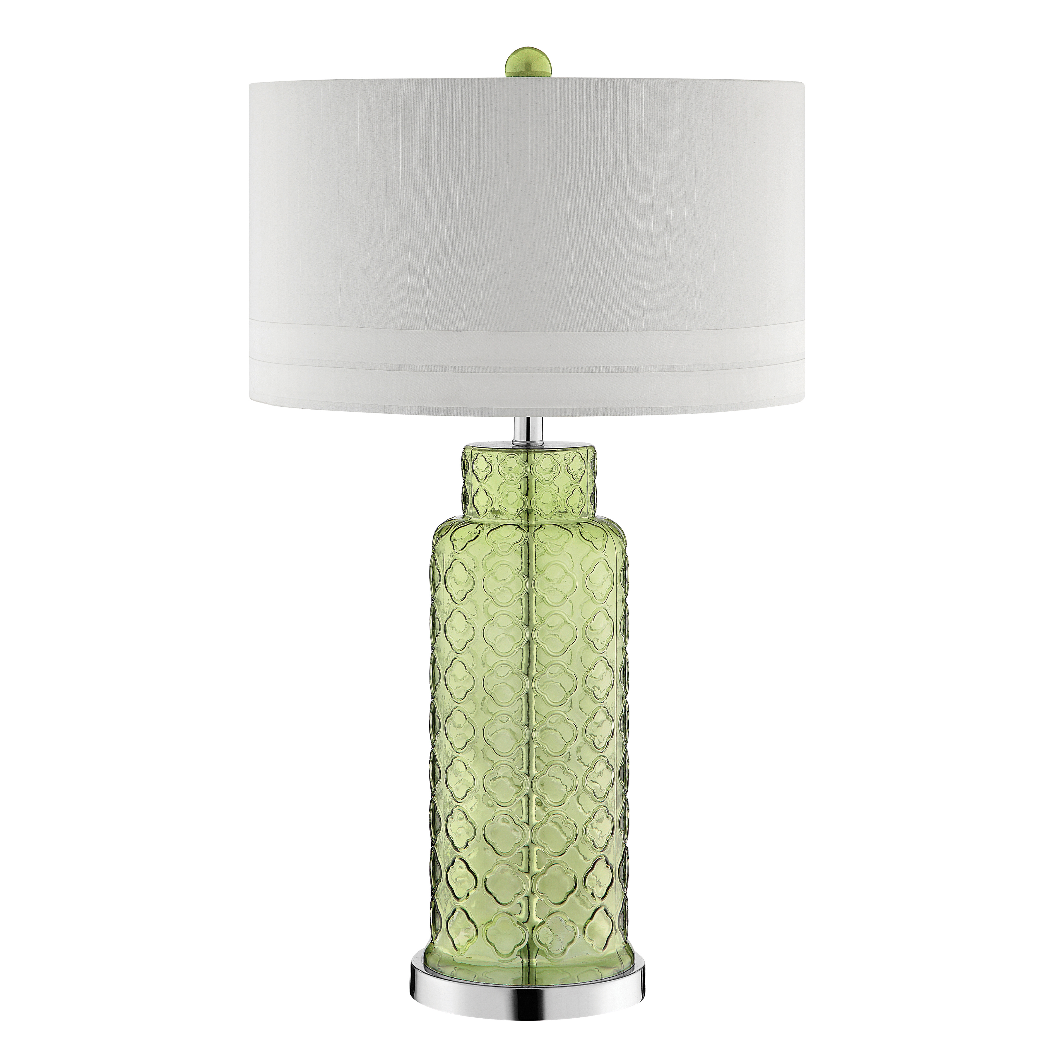 Pale pear green glass pillar table lamp in quatrefoil design .