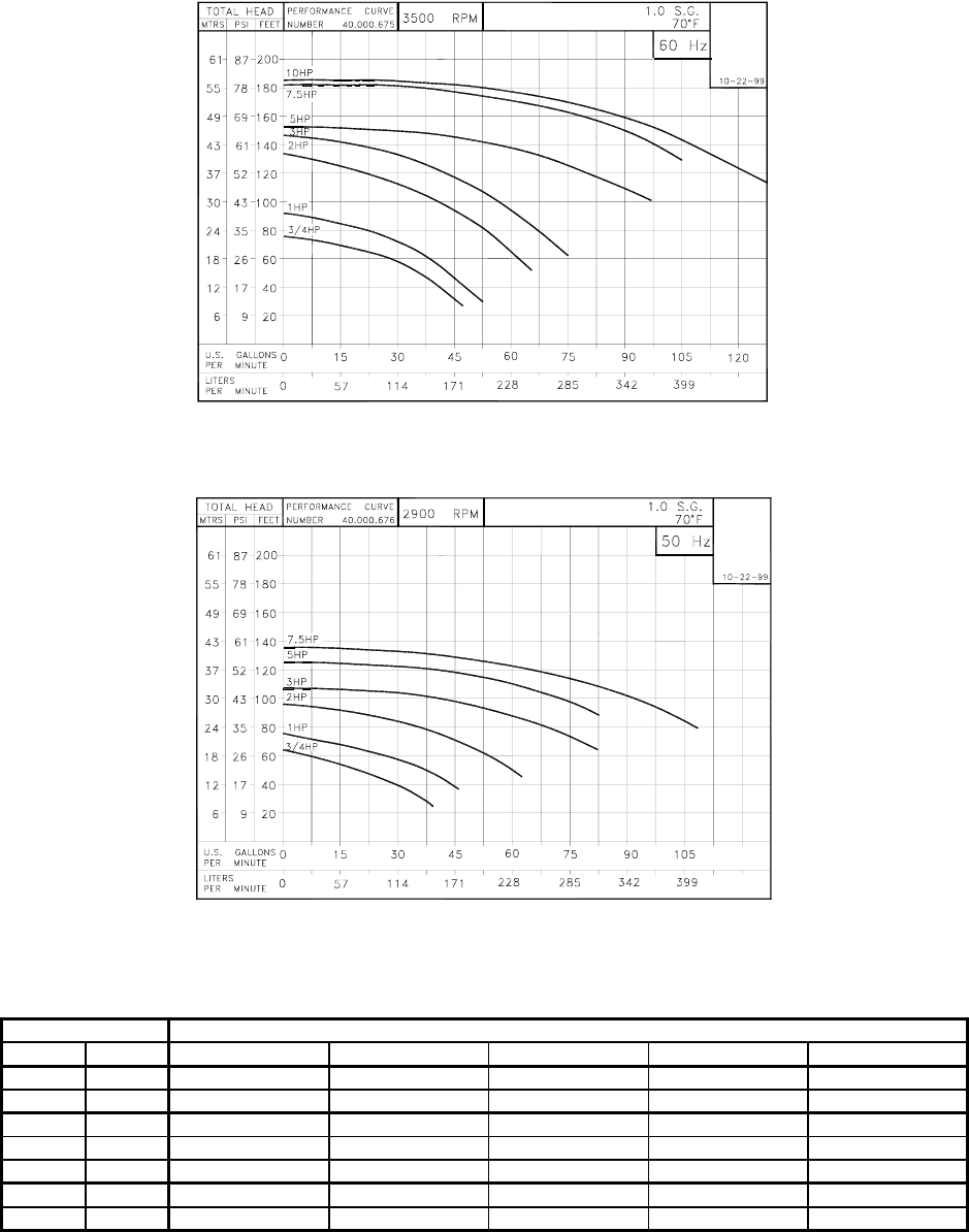 Pump Curves; 50 Hz • Consult Factory for 10 hp Curves