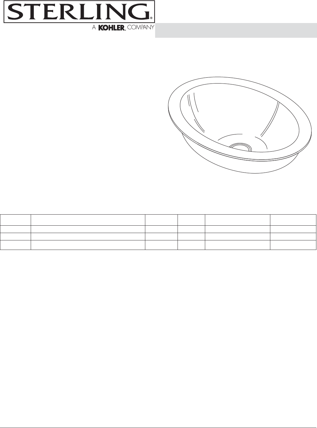 11811-0 Stainless steel oval sink, with mirror basin 0 1 5″ (127 mm) ❑ NA