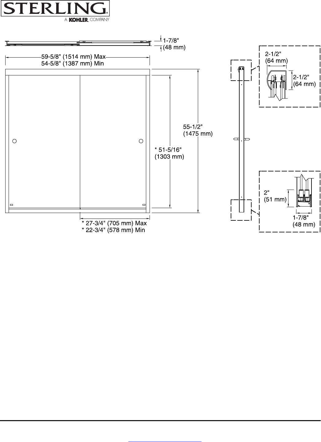 54-5/8" (1387 mm)Opening Width - Min: