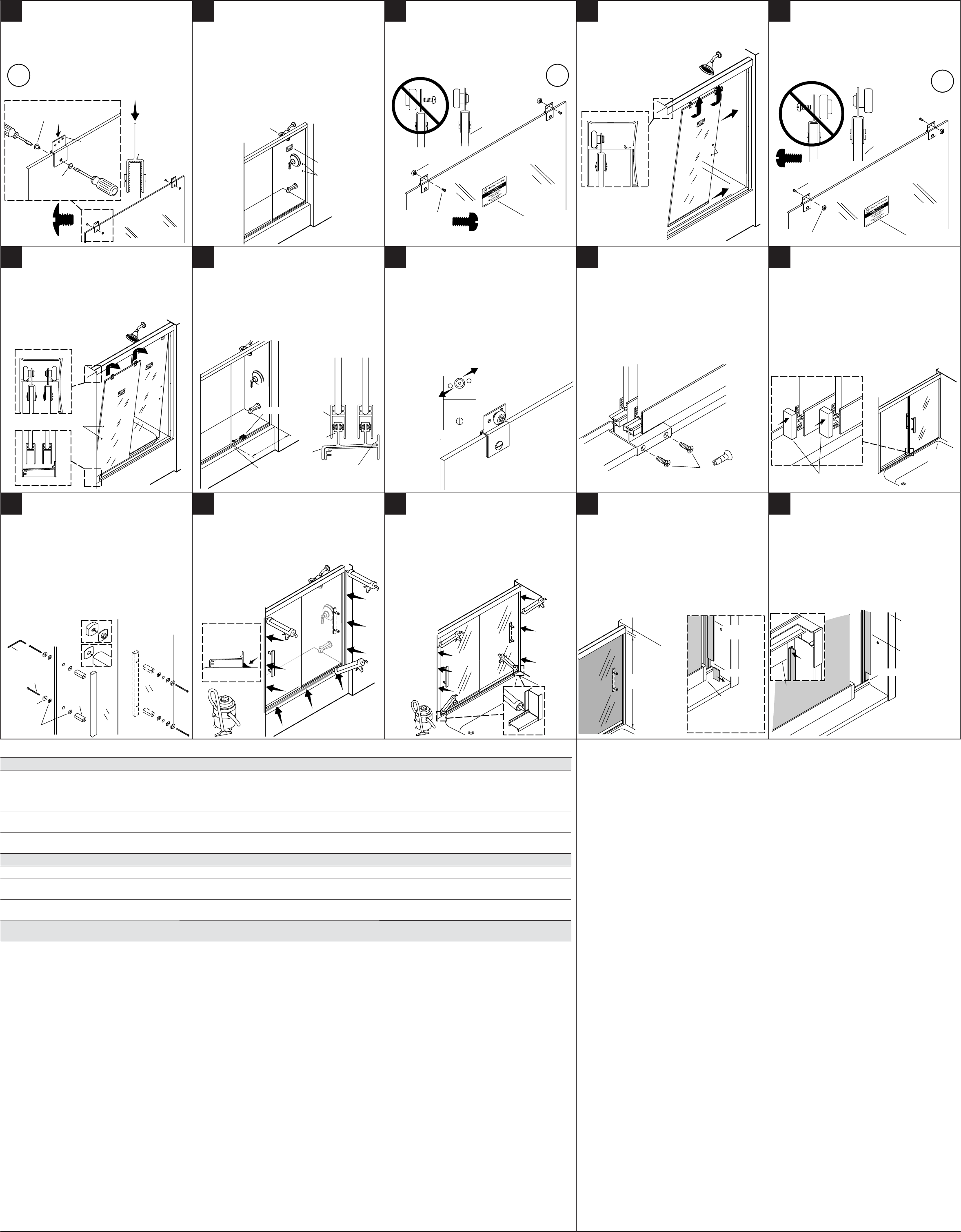 1. Fuites d'eau entre les panneaux. A. Lors de la douche, s'assurer que le panneau intérieur se trouve contre le mur de la pomme de douche.