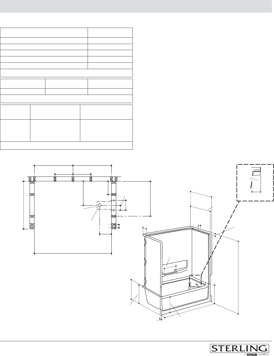 Complete bath and wall unit 125 lbs (57 kg)
