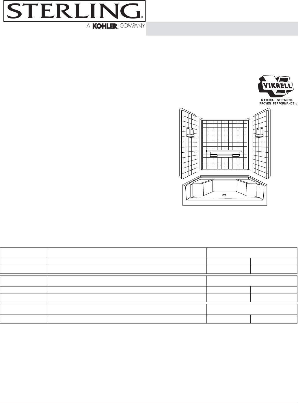 62040100 60″ (152.4 cm) seated shower base and wall surround ❑ 0 ❑ Other_____