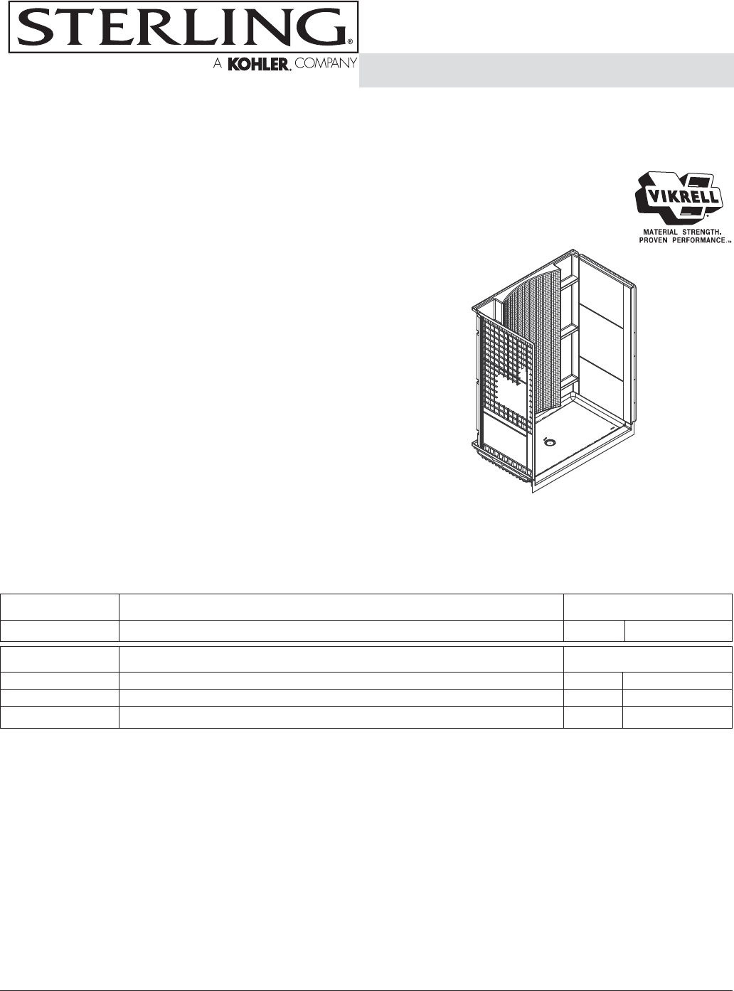 72270106 60″ (1524 mm) shower base and wall surround with backer boards ❑ 0 ❑ Other_____