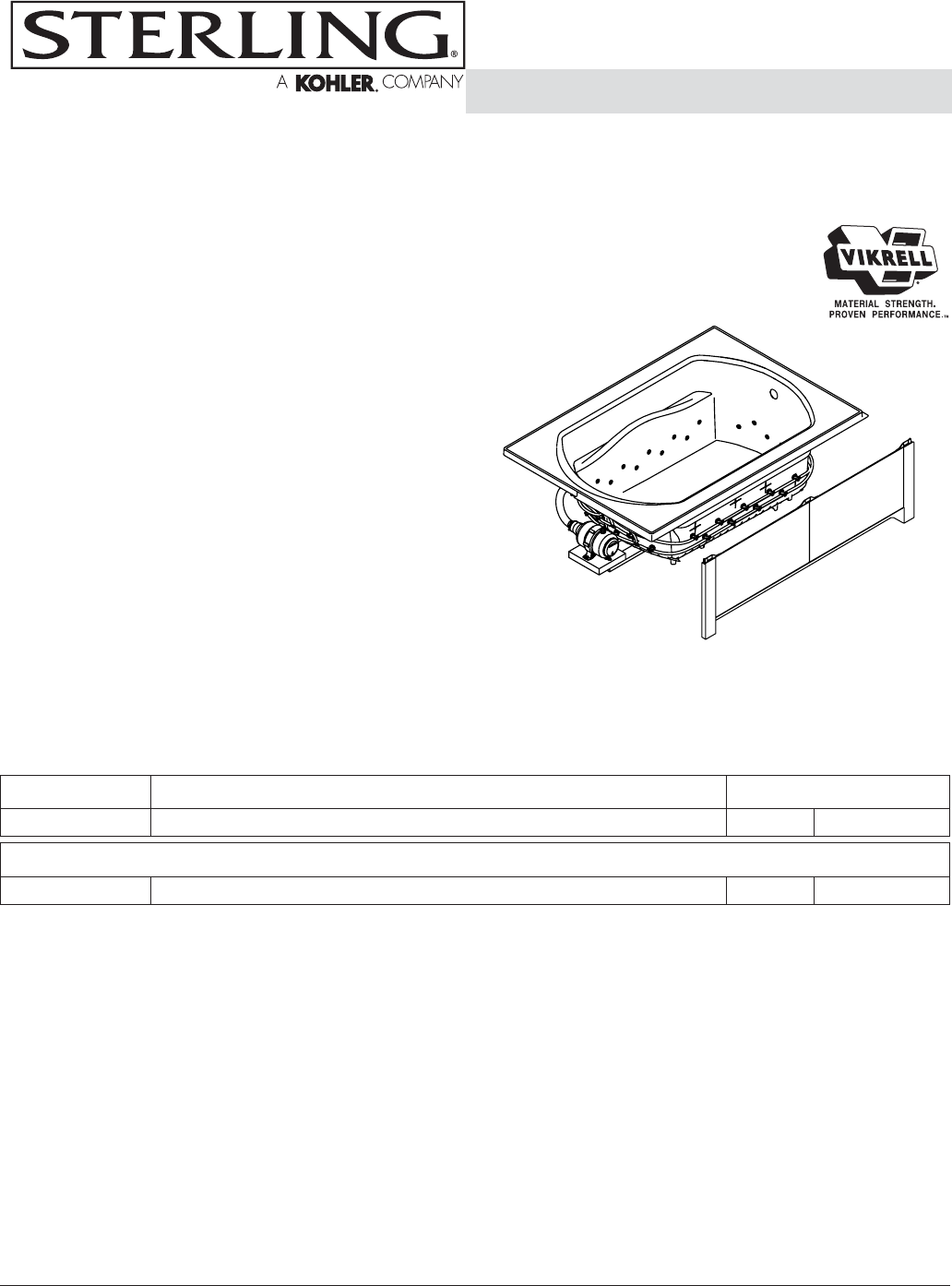 77281100 60″ (152.4 cm) x 42″ (106.7 cm) drop-in air massage bath ❑ 0 ❑ Other_____
