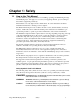 Table of Contents CHAPTER 1: SAFETY................................................................ 7 1-1 1-2 1-3 How to Use This Manual ............................................................................................. 7 Safety Symbols Used in this Manual .....................................................................7 Warnings and Precautions .......................................................................................... 8 Responsibility .......................................