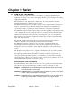Table of Contents CHAPTER 1: SAFETY ................................................................. 5 1-1 How to Use This Manual ................................................................................. 5 1-2 1-3 Warnings and Precautions .............................................................................. 6 Responsibility .................................................................................................. 6 Safety Symbols Used in this Manual ............................