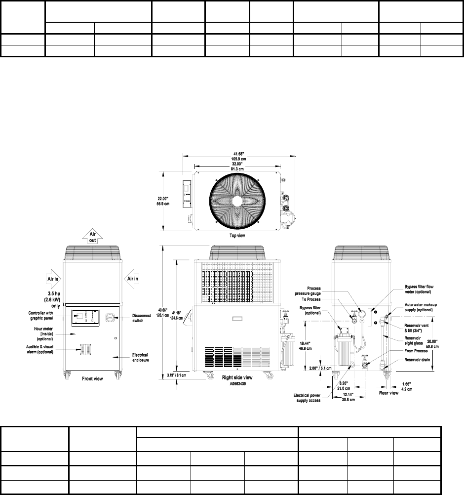 d Weight is for standard chiller. Some optional features will increase weight. Multiply lbs. by 0.454 to calculate Kg.