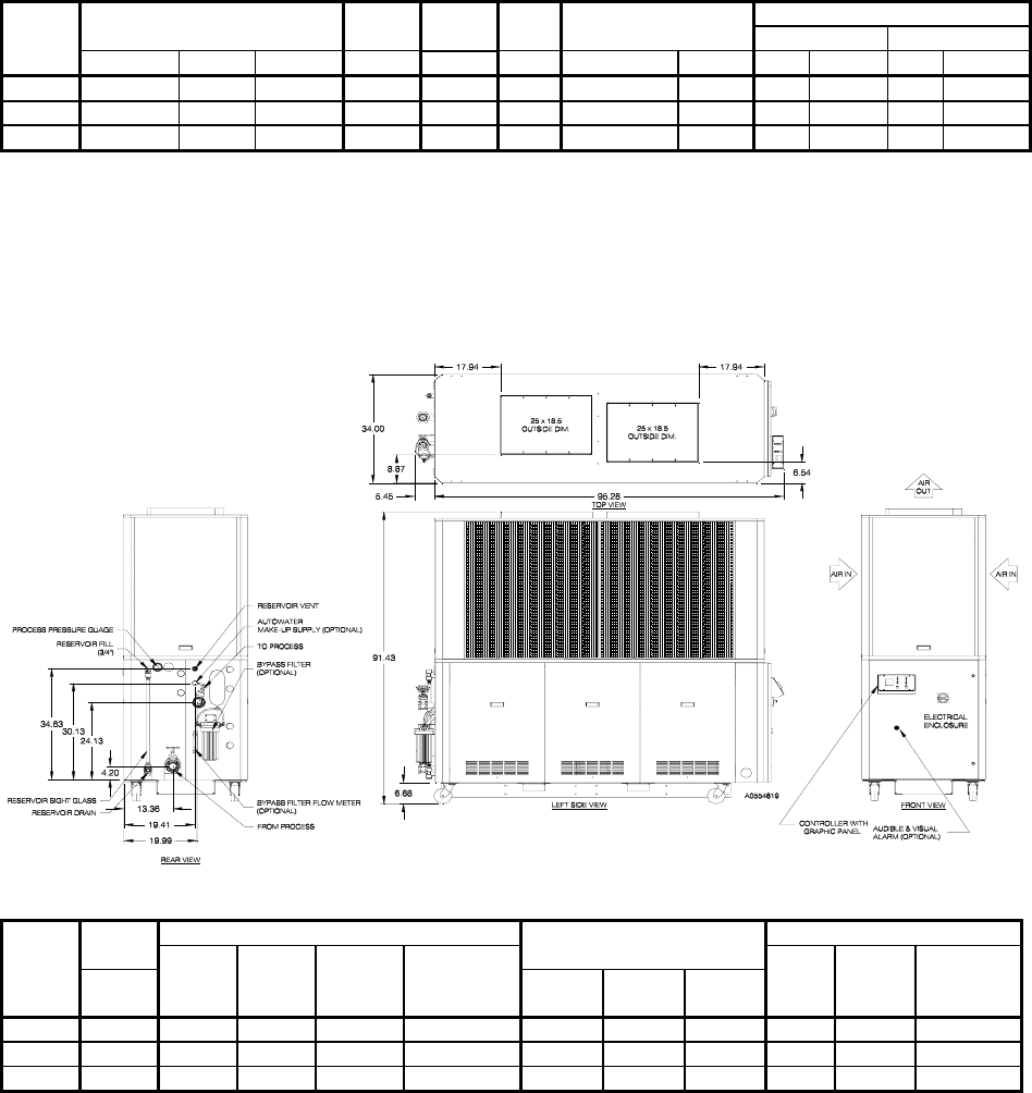 d Weight is for standard chiller. Some optional features will increase weight. Multiply lbs. by 0.454 to calculate Kg.