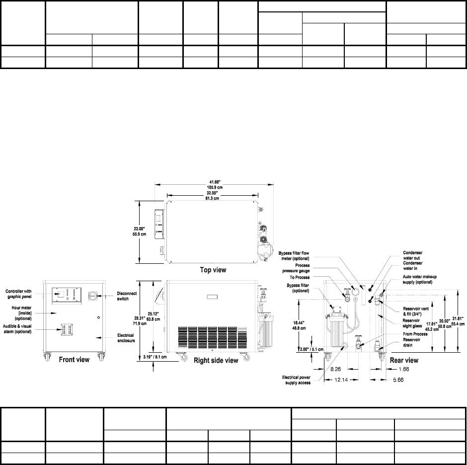 d Weight is for standard chiller. Some optional features will increase weight. Multiply by 0.454 to calculate Kg.