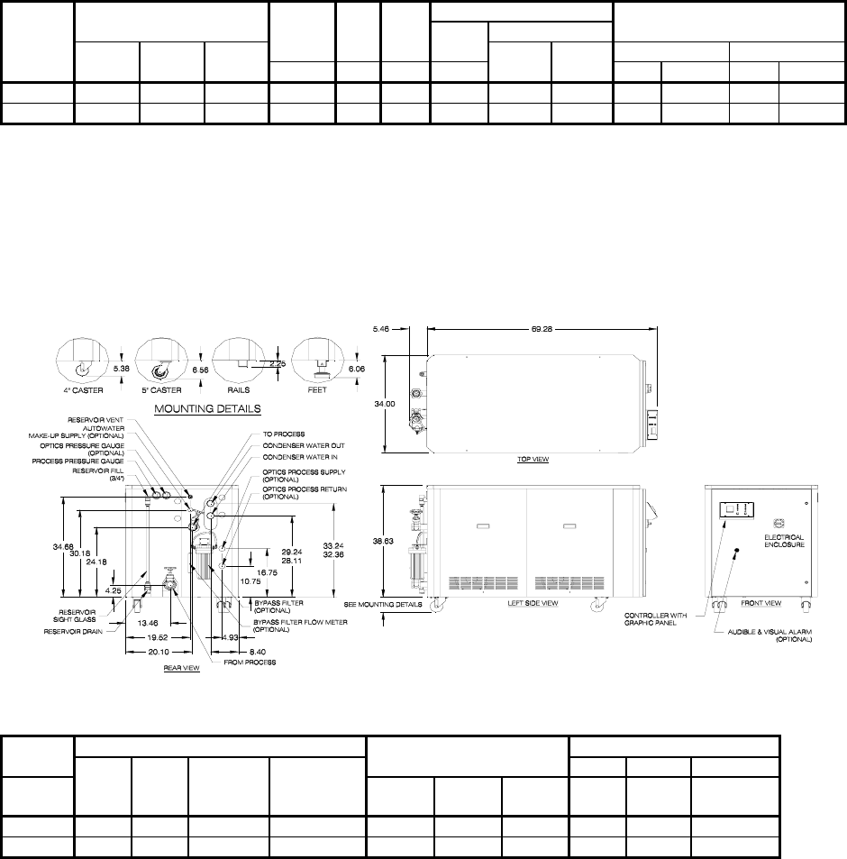 d Weight is for standard chiller. Some optional features will increase weight. Multiply by 0.454 to calculate Kg.